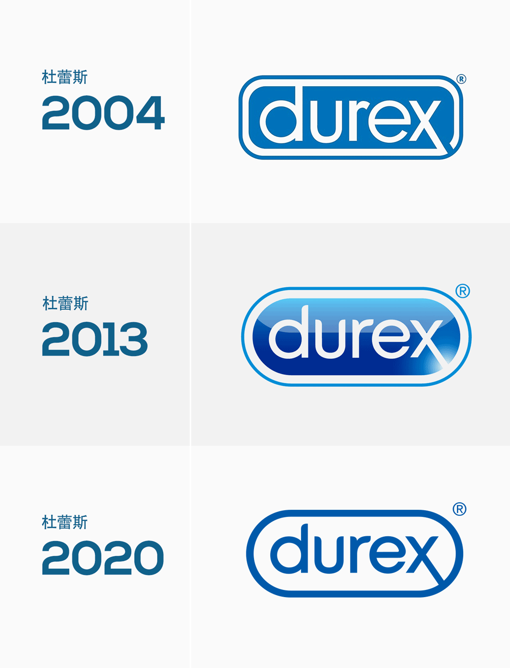 2013年,杜蕾斯曾与来自英国伦敦的Design Bridge设计公司合重塑品牌,将LOGO从原来的圆角矩形改为半圆形,整体更有质感,体现出透明的(轻薄)质感。时隔七年后,杜蕾斯委托全球创意设计机构 Havas London 和 Design Bridge 再次改造该品牌的LOGO和包装视觉外观。