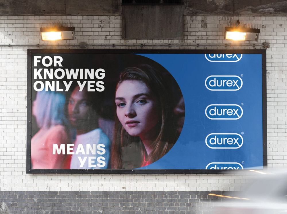 设计团队在开发新形象的同时,将LOGO圆角外框提取后,开发成为易于识别的扩展符号,成为该品牌的核心视觉资产。这个图形元素可以穿插到杜蕾斯品牌的各个环节,如产品包装,营销材料,海报,媒体广告等。