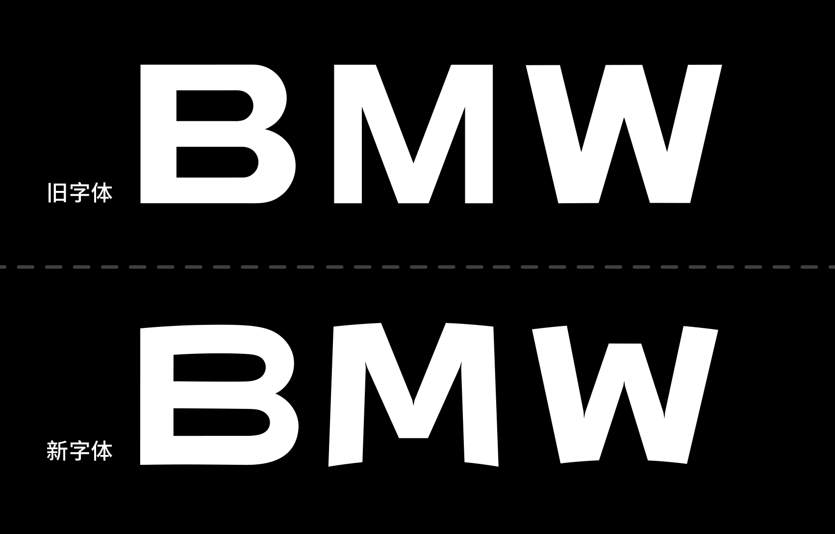 字体方面,新版字母「BMW 」中的「B」字增加了空白部分的长度,将「W」底部和顶部做弧形切割,更适应圆弧的外轮廓和内部轮廓。