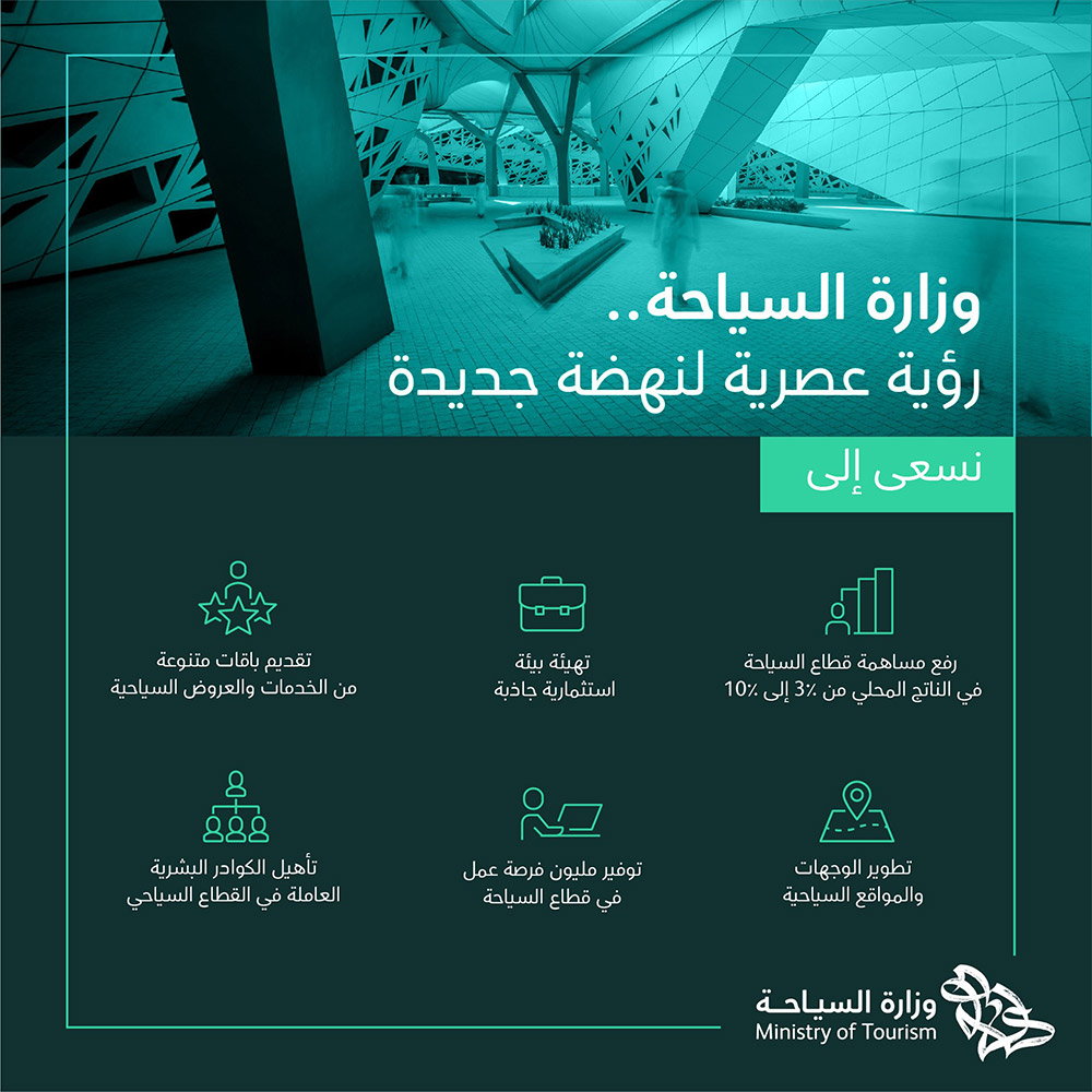 2020年2月27日,沙特阿拉伯旅游和国家遗产委员会(SCTH)在沙特首都利雅得(Riyadh)发布了新版国家旅游品牌LOGO,以强化旅游部门实现国家旅游战略目标的愿景。在这之前,沙特官方旅游LOGO是由一根多彩的线条汇聚成一棵棕榈树,是慷慨和好客的象征,反映了充满活力的现代沙特阿拉伯官方机构。
