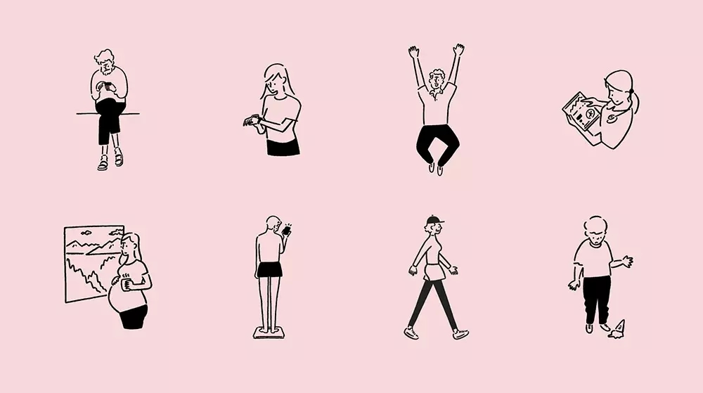 为了使新品牌在数字化体验更人性化,Koto 与日本插画家 Yu Nagaba(长场雄)合作,开发了一些具有魅力的插图来捕捉临床医生,患者及其家属。这些角色会出现在整个应用程序和数字体验中,从而增加了温暖感,相关性和乐观感。