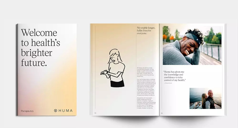 Medopad新的名称命名为Huma希望反映该公司为人类做出奉献的精神。Huma全新的LOGO体现了对整个人类健康的关注,其形式基于达·芬奇的在1487年前后创作的世界著名素描《维特鲁威人(HomoVitruvianus)》的造型抽象符号化,因为达芬奇是人类第二个千年乃至21世纪初的艺术家和科学家的象征。